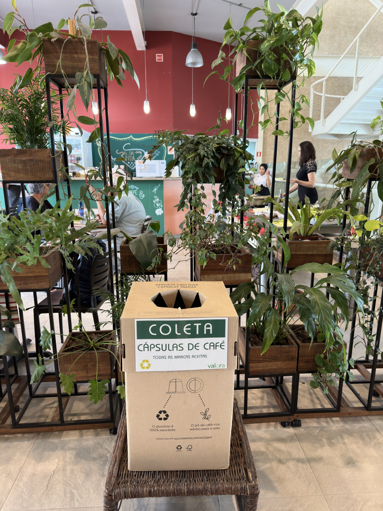 São reunidas e encaminhadas para projetos sociais — a venda das tampinhas gera recursos que apoiam pessoas em situação de vulnerabilidade social e iniciativas de cuidado de animais. - Cápsulas de café: